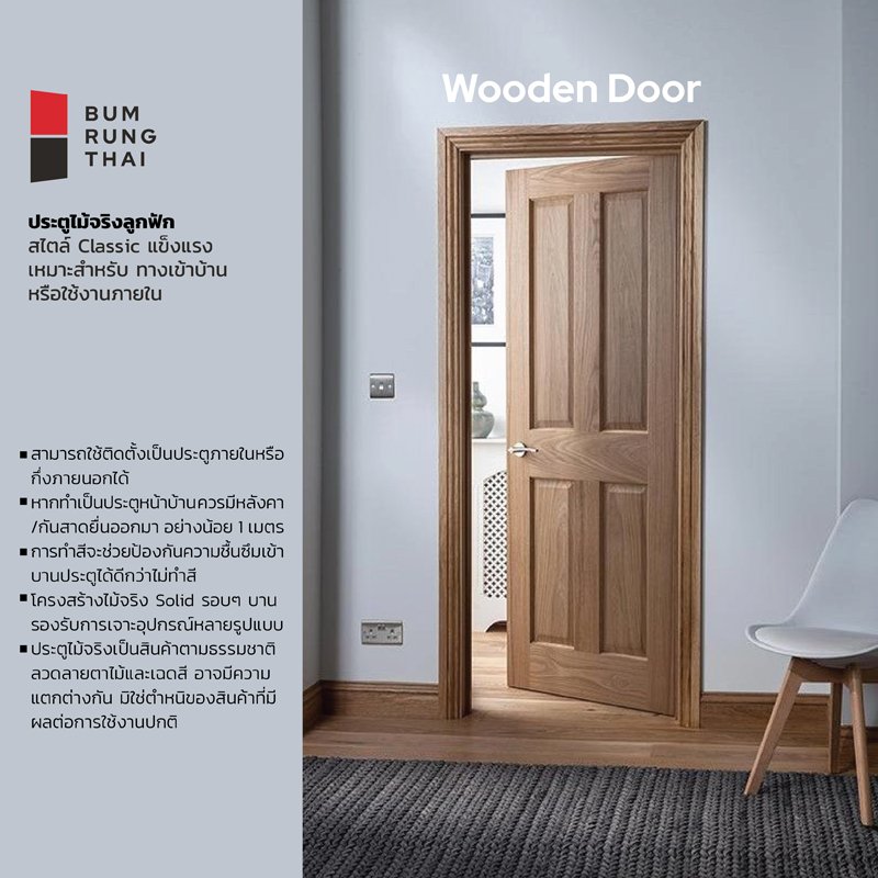 ประตูไม้จริงลูกฟัก สไตล์ Classic แข็งแรง เหมาะสำหรับ ทางเข้าบ้านหรือใช้งานภายใน