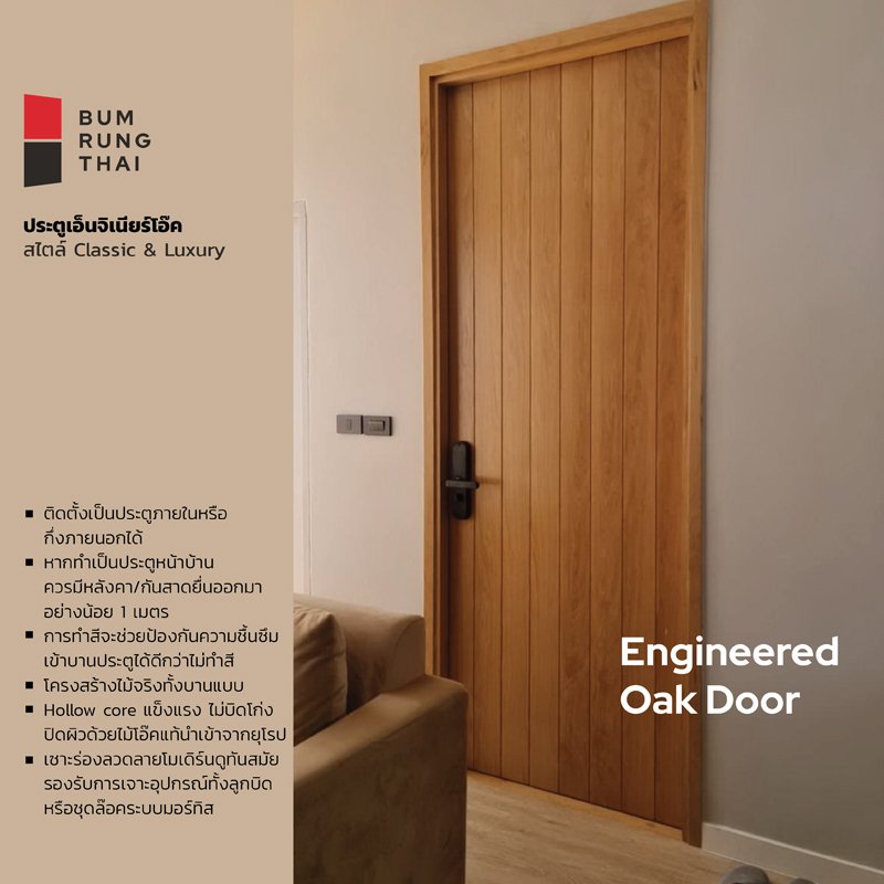 -โครงสร้างไม้จริงทั้งบานแบบ Hollow core แข็งแรง ไม่บิดโก่งปิดผิวด้วยไม้โอ๊คแท้นำเข้าจากยุโรปเซาะร่องลวดลายโมเดิร์นดูทันสมัย