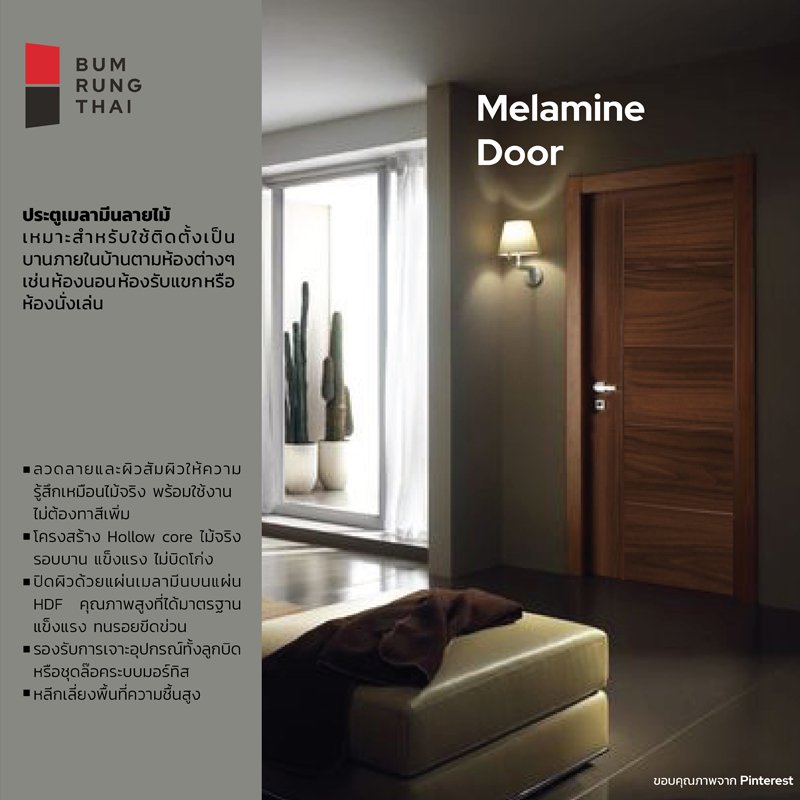 ประตูเมลามีนลายไม้เหมาะสำหรับใช้ติดตั้งเป็น บานภายในบ้านตามห้องต่างๆเช่น ห้องนอน ห้องรับแขก หรือห้องนั่งเล่น