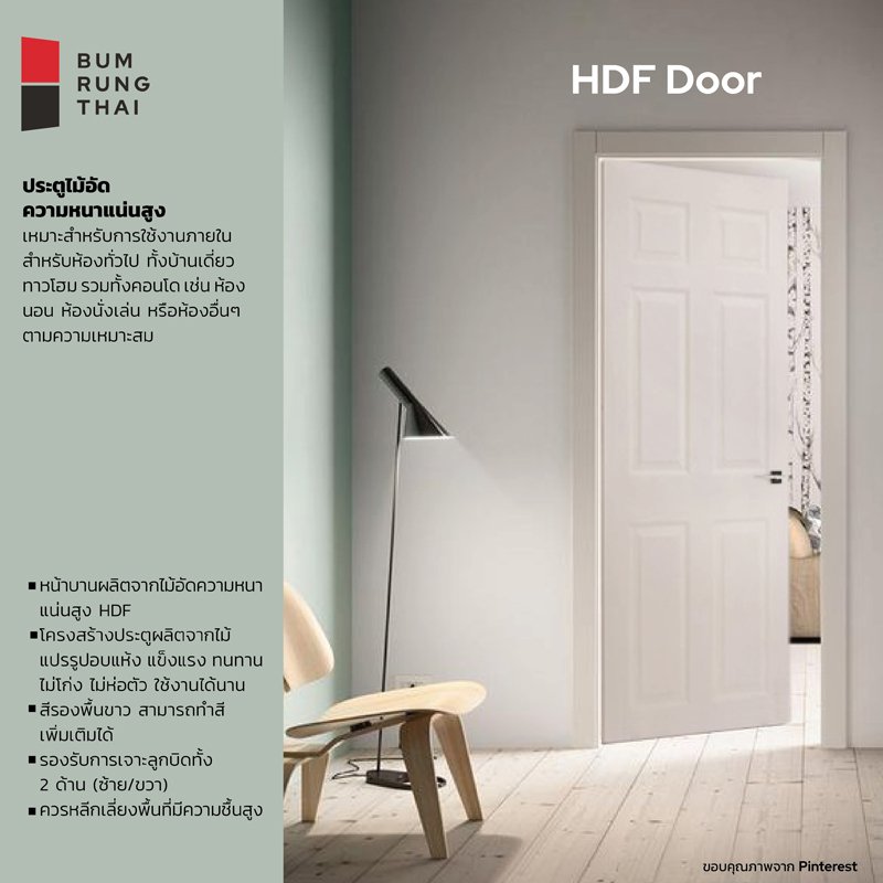 -โครงสร้างประตูผลิตจากไม้แปรรูปอบแห้ง แข็งแรง ทนทาน ไม่โก่ง ไม่ห่อตัว ใช้งานได้นาน