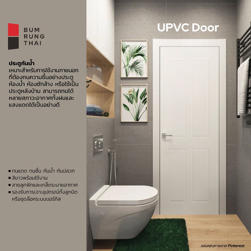 ประตูกันน้ำเหมาะสำหรับการใช้งานภายนอกที่ต้องทนความชื้นอย่างประตูห้องน้ำ ห้องซักล้าง หรือใช้เป็นประตูหลังบ้าน สามารถทนได้หลายสภาวะอากาศทั้งฝนและแสงแดดได้เป็นอย่างดี